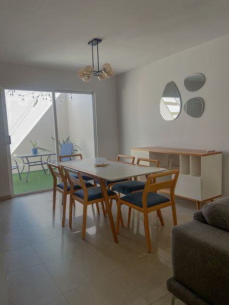 Cuenta con 3 amplias habitaciones, 2 baños completos , 1 medio baño, 3 closets, cocina integral, 3 minisplit y área de estacionamiento para dos autos.
