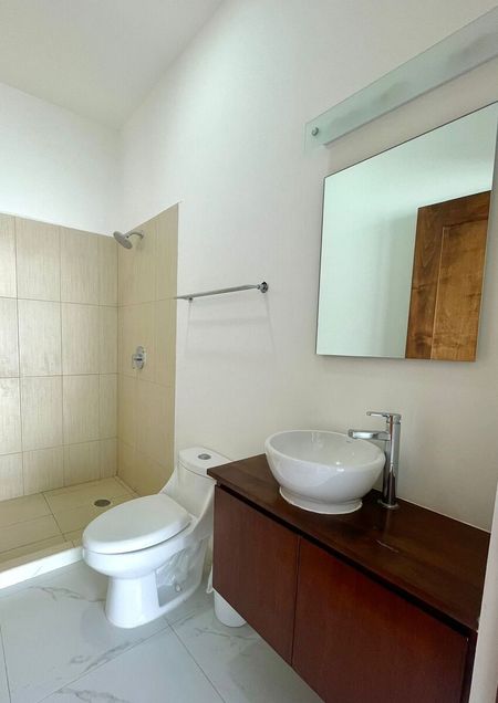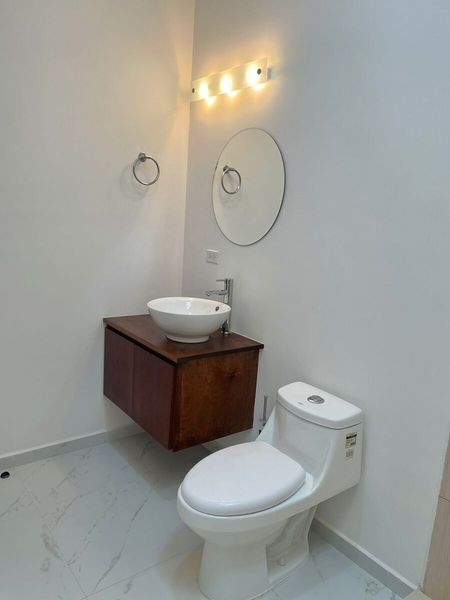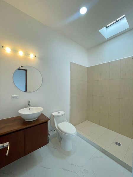 En el exterior encontrarás portón con cochera para dos carros y una cisterna de 2,800 litros, en el interior un jardín que brinda ventilación natural.