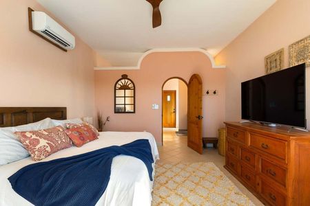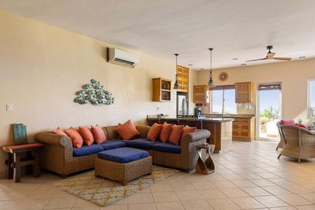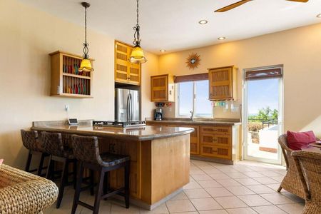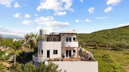 Casa La Torre ofrece impresionantes vistas panorámicas del palmeral, el océano y la Sierra La Laguna desde su privilegiada ubicación en La Poza. Esta casa de tres dormitorios y dos baños se encuentra en un terreno amurallado y cerrado con jardines maduros y una piscina de agua salada. La sala de estar de concepto abierto cuenta con chimenea, cocina gourmet y acceso a una terraza envolvente con ducha exterior, brasero y barbacoa. La suite en la planta baja garantiza la privacidad de los huéspedes, mientras que la planta superior incluye la suite principal y un dormitorio adicional con dos camas individuales, ideal para alquileres vacacionales. Construida con materiales de calidad y completamente amueblada, Casa La Torre encarna la elegancia, la comodidad y el encanto atemporal de Baja California.