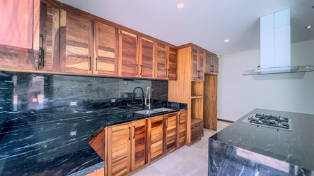 -Carpintería de parota sólida, presente en closets, cocina y puertas, agregando calidez y un ambiente acogedor.